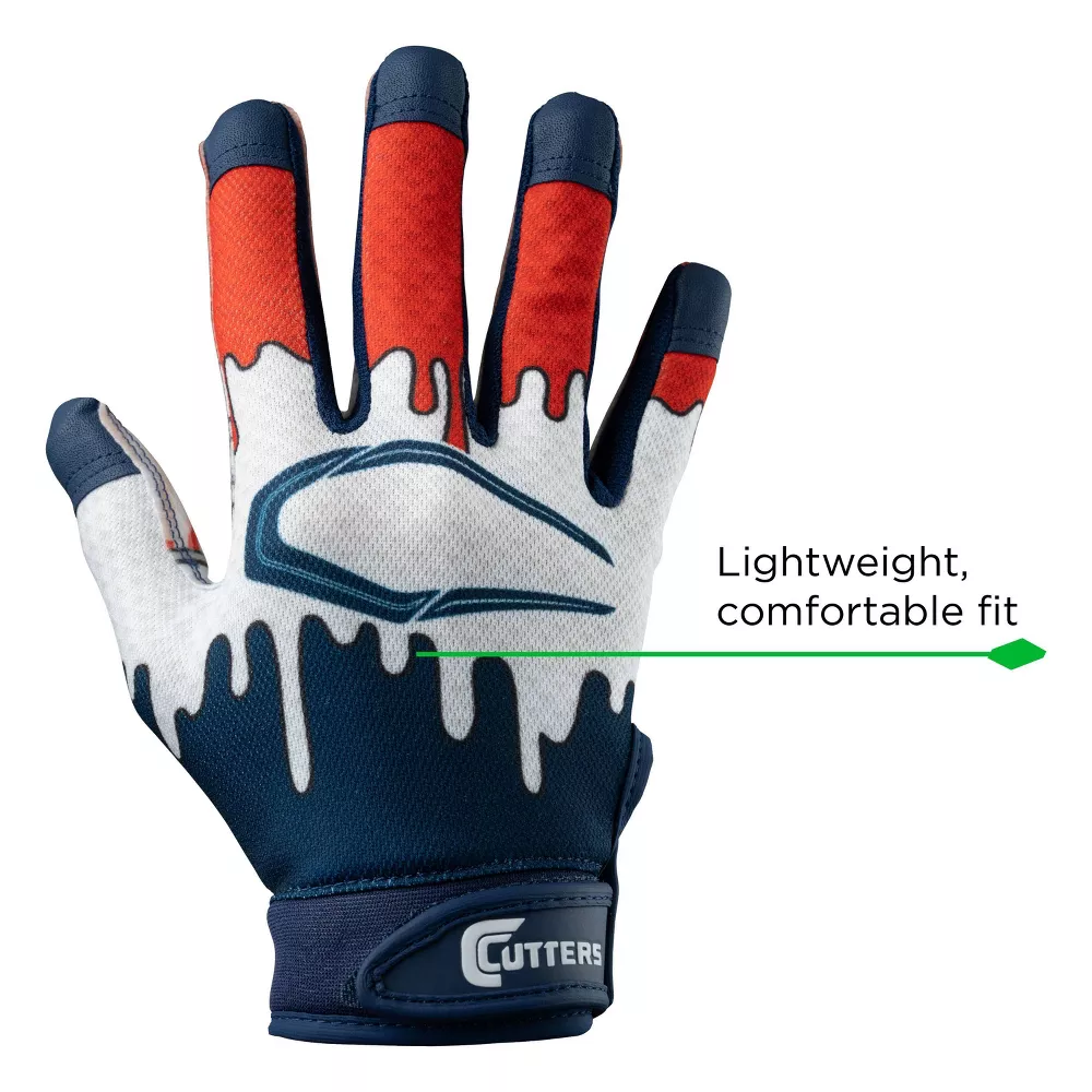 Build your game on Cutters confidence. The Cutters Game Day Receiver Glove is an exceptional all-around, highly durable glove. The speed grip silicone palm amplifies your natural talents for fumble-proof plays. Precision stitching and durable fabric combine to create a skin-tight, reflex enhancing, ball catching pair of gloves. Made for all, from college champs, to pee wee.