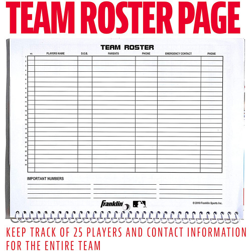 The Franklin Official Baseball/Softball 25 Game Scorebook is designed for easy stat tracking. Each Franklin Official scorebook is capable of holding 25 games of both baseball and softball.