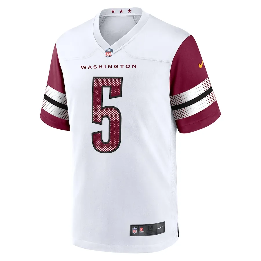 Rep the on-field look of your favorite Washington Commanders player with this Jayden Daniels Fashion Game Jersey from Nike. Its screen print name, numbers and team details provide a kickoff-ready aesthetic while also offering a comfortable, lightweight feel. Designed for everyday movement, this jersey has a versatile tailored fit and features mesh side panels for added ventilation as you celebrate every big play by the Washington Commanders this season.