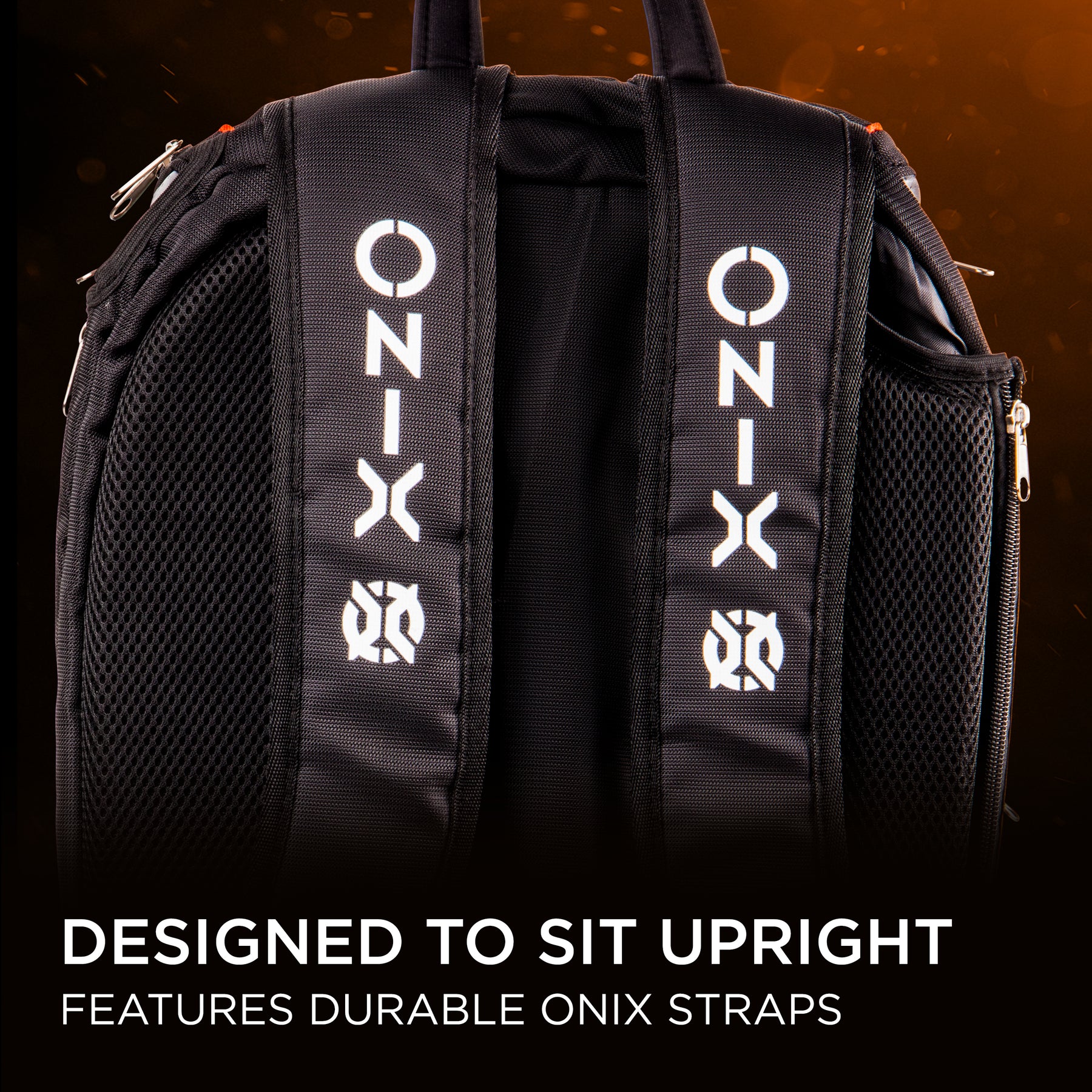 - SITS UPRIGHT – Durable backpack sits upright and features ONIX logos on each side and on straps