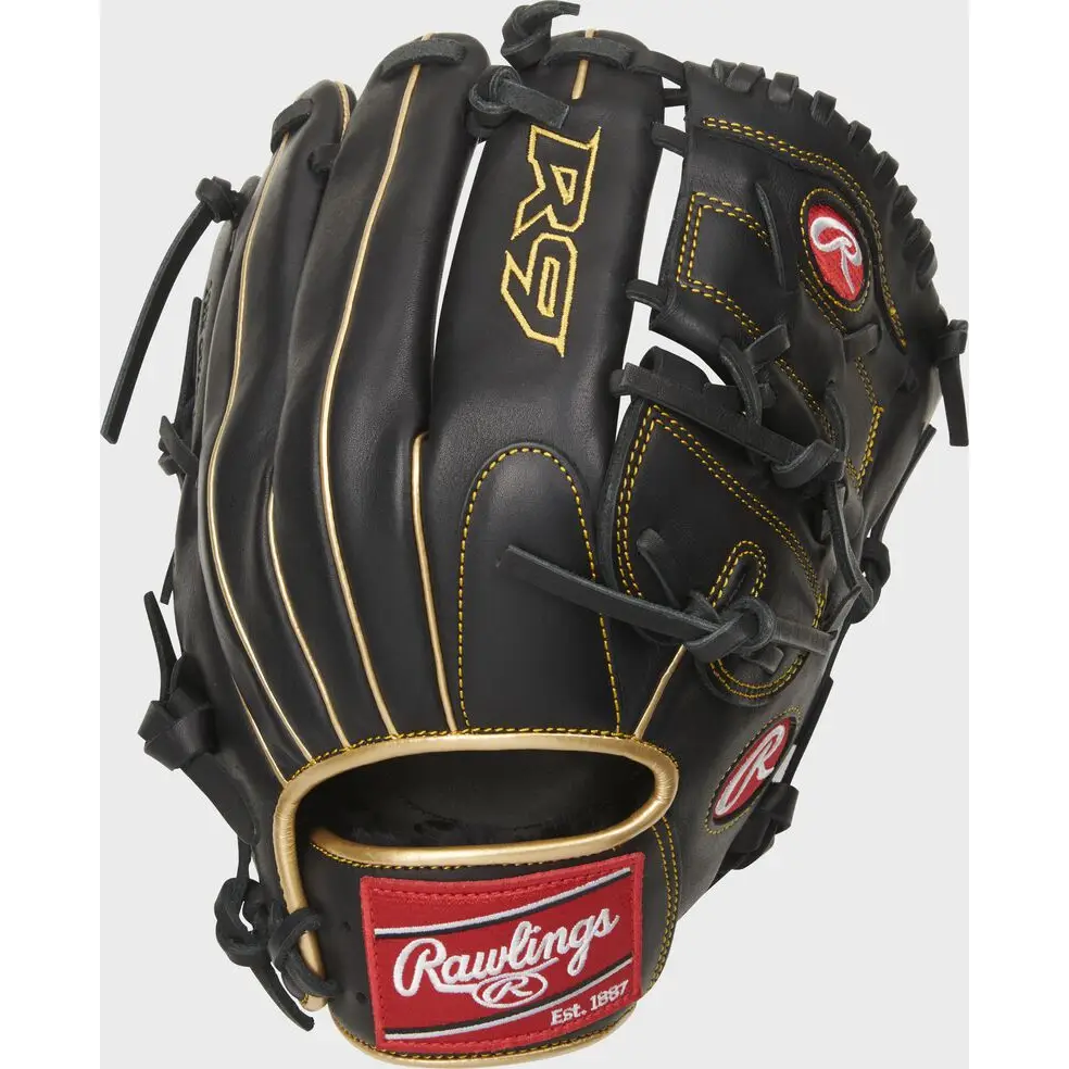 In addition, our R9 gloves all feature padded finger-back lining and thumb loops, and reinforced palm padding too. Together, these combine to give athletes superior comfort and feel every time they put it on. This glove was also crafted in our popular, pro-200-pattern with a 2-piece solid web, making it ideal for both infielders and pitchers alike. The gold binding and welting accent the black leather perfectly, for an eye-catching design that is sure to turn heads.